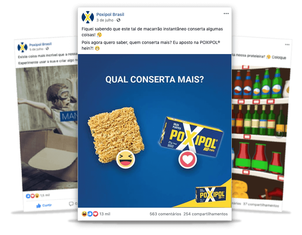 Como você pode perceber, os seguidores da POXIPOL® demonstram grande admiração e amor pelo produto. Por meio disso e dessa pegada mais descontraída, o alcance mensal médio foi de 380 mil pessoas nas redes, e uma média de 182 mil interações desde janeiro de 2019.